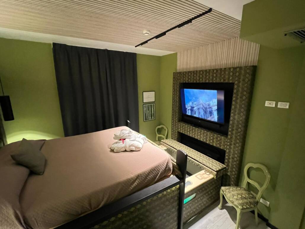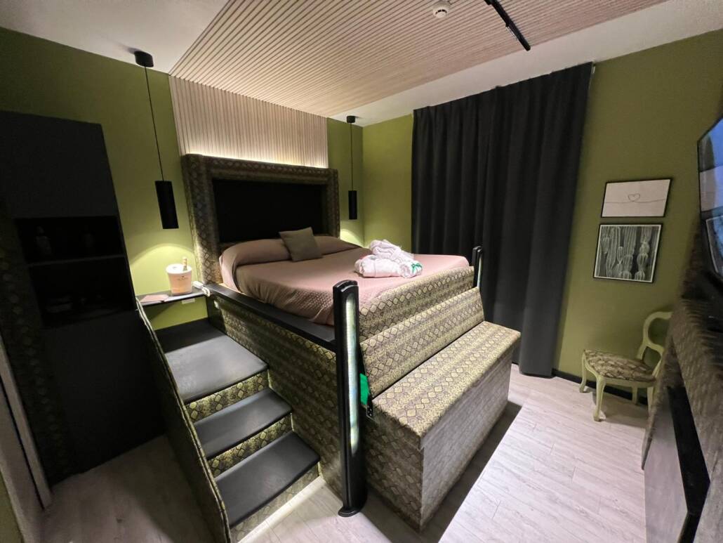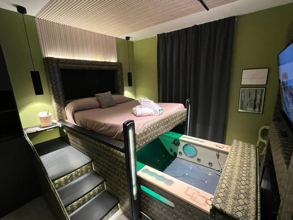 Ogni dettaglio è studiato per offrire il massimo comfort: una vasca idromassaggio privata a scomparsa, TV con 100 film HD, connessione Wi-Fi e un’atmosfera intima e discreta, perfetta per due.